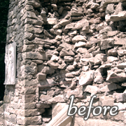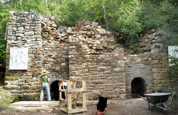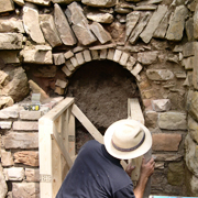 Here are some details of a repair on a 19th century industrial lime kiln. The kiln was built against a portion of the Niagara Escarpment and was fed lime stone for burning from above. The two arched bays at the bottom of the kiln is where the quicklime was extracted after a burn. Our project was to make the defunct kiln safe and to restore some of the features to their original state. |