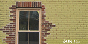 | Two chimneys were rebuilt using reclaimed brick. Two windows were added to the north facade. Old paint was stripped and replaced with new colour. |
